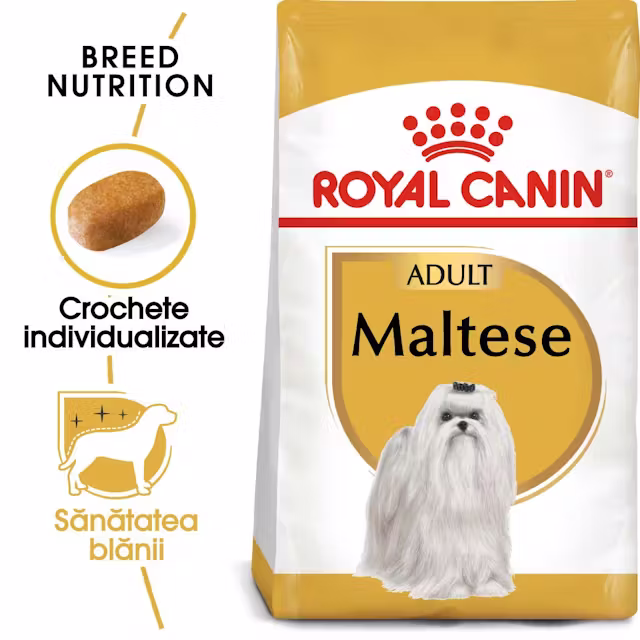 Royal Canin Breed Maltese Adult îi oferă patrupedului dumneavoastră aminoacizi importanți și grăsimi sănătoase, de exemplu din ulei de limba mielului. Acest lucru poate susține o piele sănătoasă și o blană strălucitoare. Nutrienții de înaltă calitate pot contribui, de asemenea, la reducerea cantității de fecale și a mirosului neplăcut al scaunelor. În plus, hrana uscată este o alegere excelentă dacă Bichonul dumneavoastră este unul dintre membrii mai pretențioși ai rasei sale. Datorită combinației exclusive de nutrienți și gustului delicios, crochetele crocante asigură o acceptare ridicată.